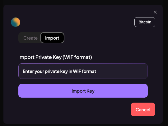 LocalBased is a custom solution for bridging Bitcoin. If you choose the LocalBased solution, a new window will open, enabling you to either create or import your private key (in WIF format).