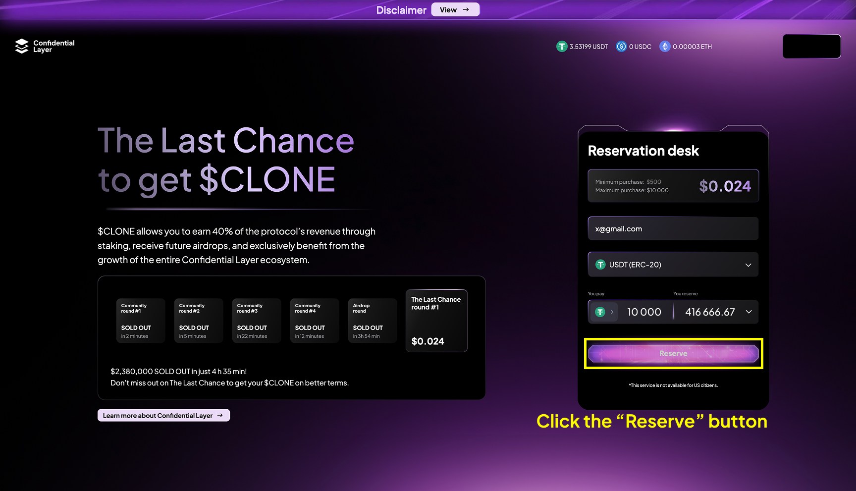 How to buy/reserve $CLONE?